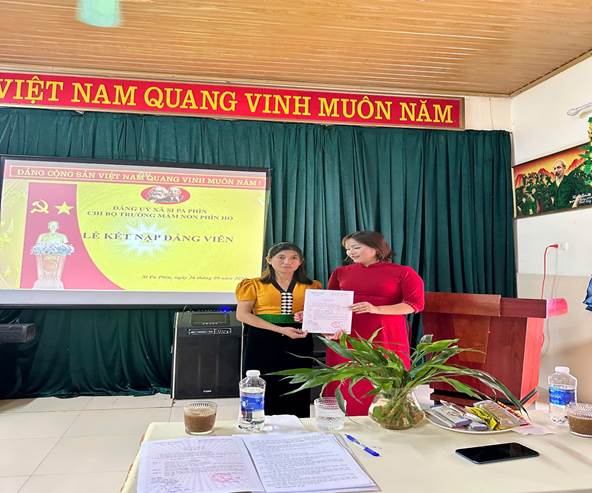 Chiều ngày 26/9/2025, Chi bộ Trường Mầm non Phìn Hồ đã long trọng tổ chức Lễ kết nạp Đảng viên mới cho 3 quần chúng ưu tú: Khoàng Thị Thịnh, Lường Thị Dương, Lò Thị Hiền .