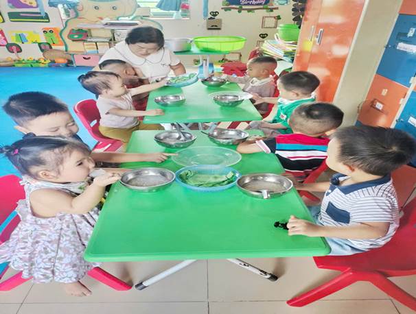 Bên cạnh đó, các cô luôn kiên nhẫn, yêu thương, dành thời gian quan tâm riêng cho từng trẻ, nhất là những em còn rụt rè, hay khóc khi mới đến lớp. Sự ân cần, gần gũi ấy dần xua tan cảm giác xa lạ, giúp các em mạnh dạn, tự tin hơn. Nhiều phụ huynh chia sẻ rằng, chỉ sau một thời gian ngắn, con em họ đã biết chào hỏi lễ phép, thích đến lớp, và đặc biệt là vui vẻ khi được tham gia các trò chơi, bài hát cùng bạn bè.